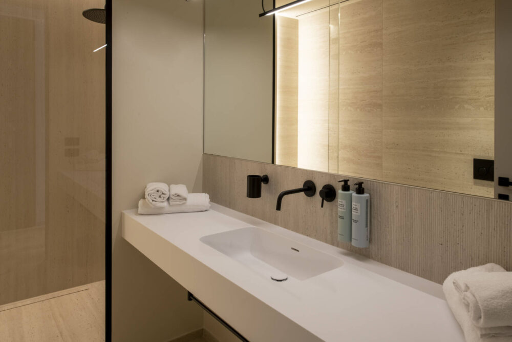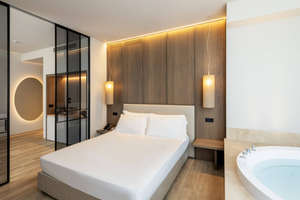 Ogni suite può ospitare fino a quattro persone, grazie alla possibilità di aggiungere due ospiti in un divano letto. Perfetta per chi desidera un soggiorno all’insegna del comfort e del relax senza rinunciare alla privacy.
